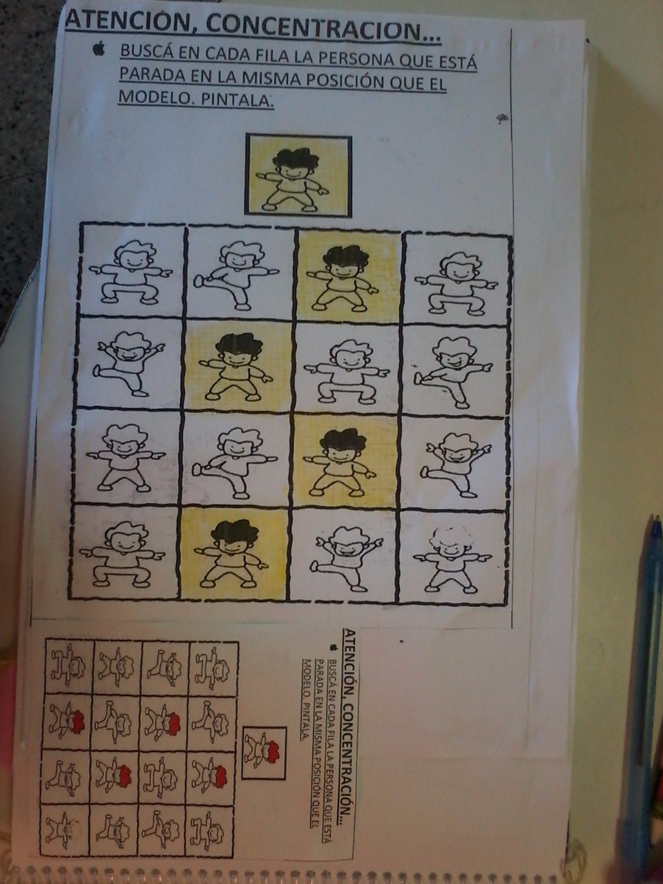 aquí una adaptacion de acceso viso/motriz. en la primer foto se observa la fotocopia original abajo a la izquierda; se amplia el tamaño para que pueda ver mejor y para que señale con su pulgar el cuadro que hay que pintar (como se ve en la segunda imagen)
